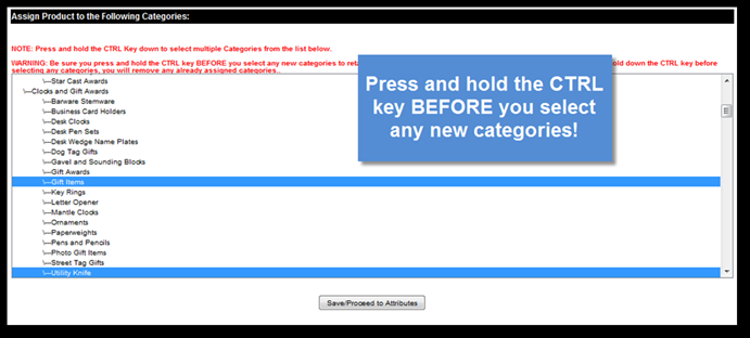 Press and hold the CTRL Key down to select multiple Categories from the list